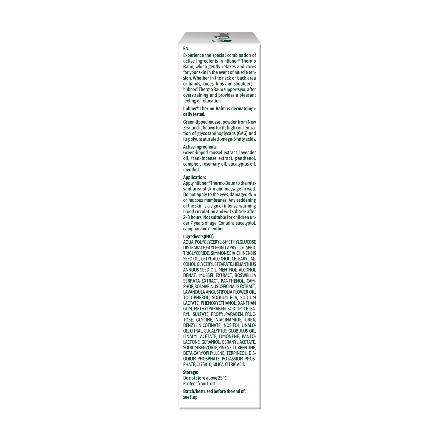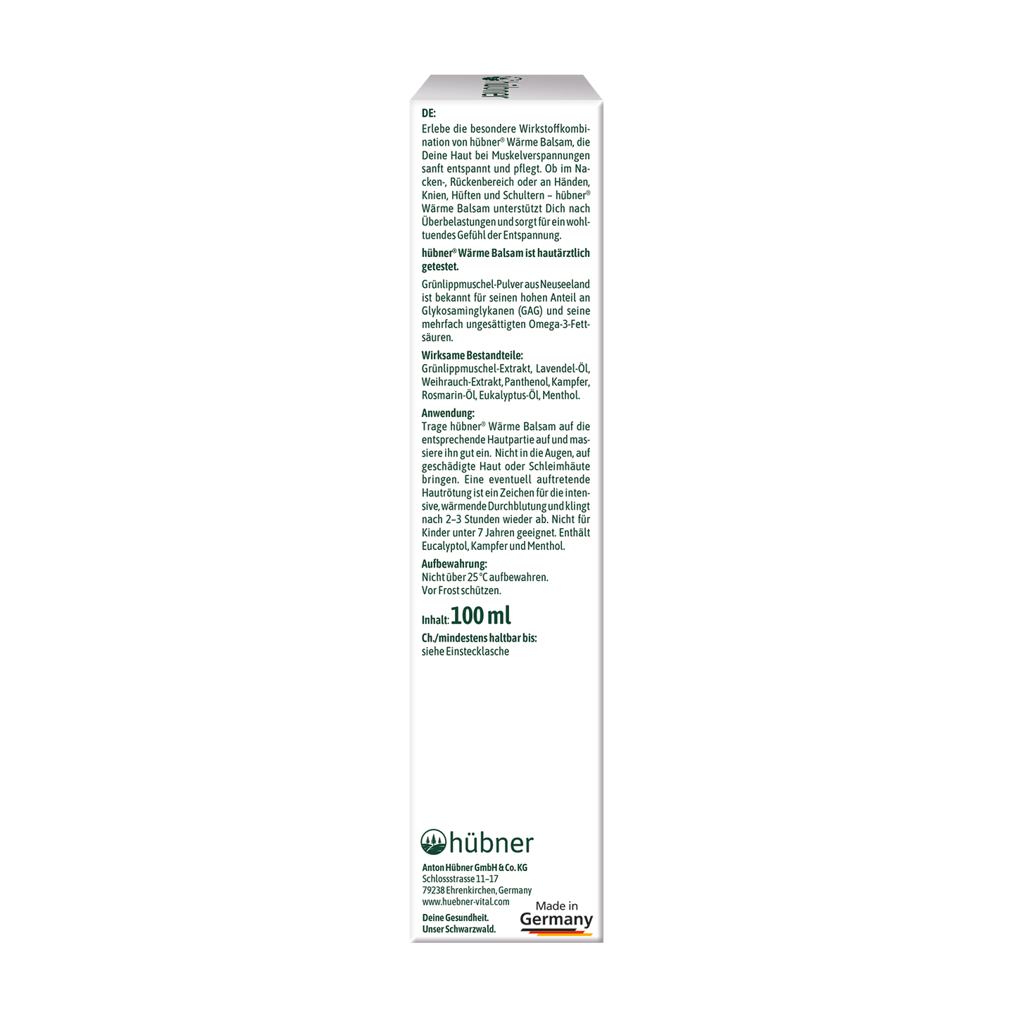hübner® Wärme Balsam auf Hautpartien auftragen und einmassieren, dabei nicht in die Augen, auf geschädigte Haut oder Schleimhäute bringen. -