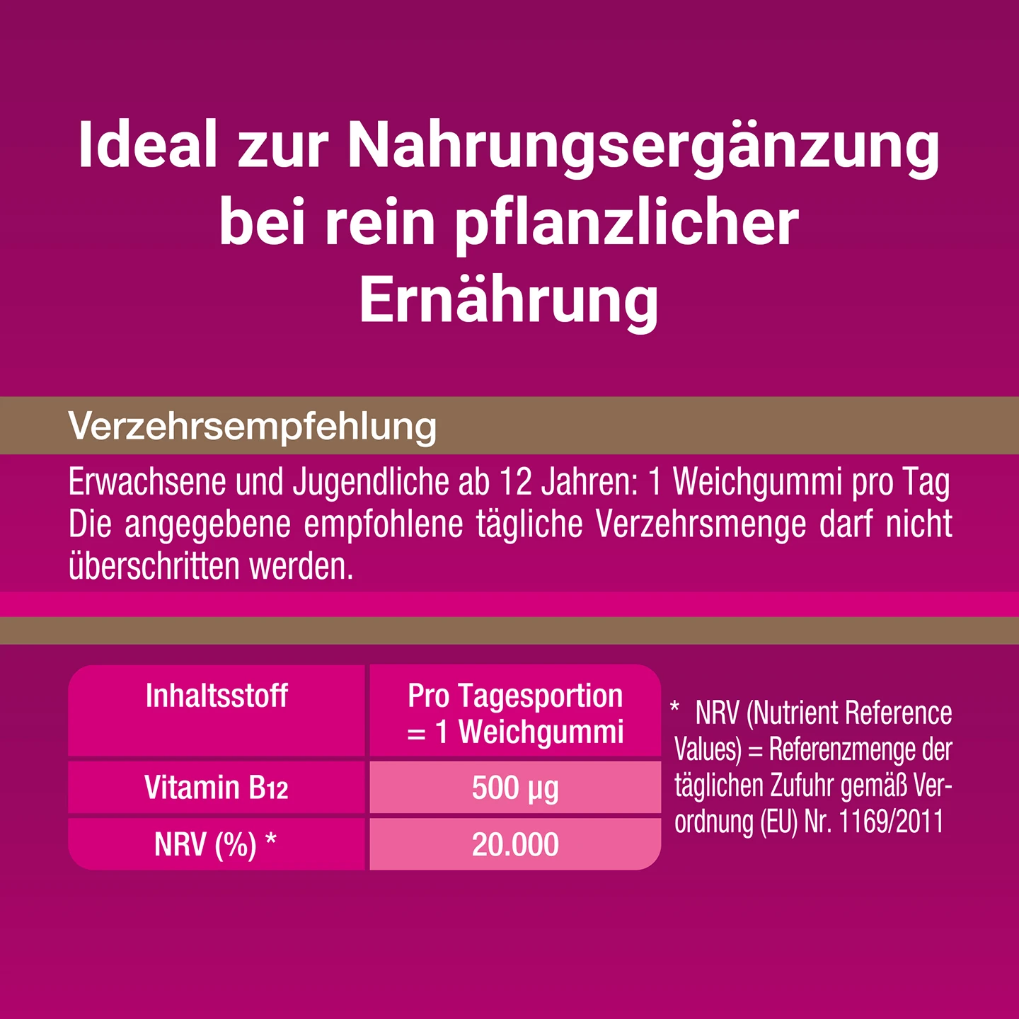 Ein Weichgummi enthält 500 μg Vitamin B12.